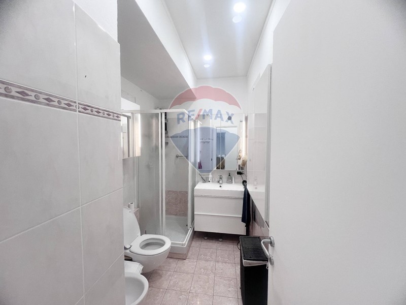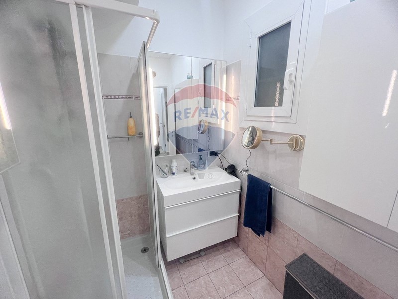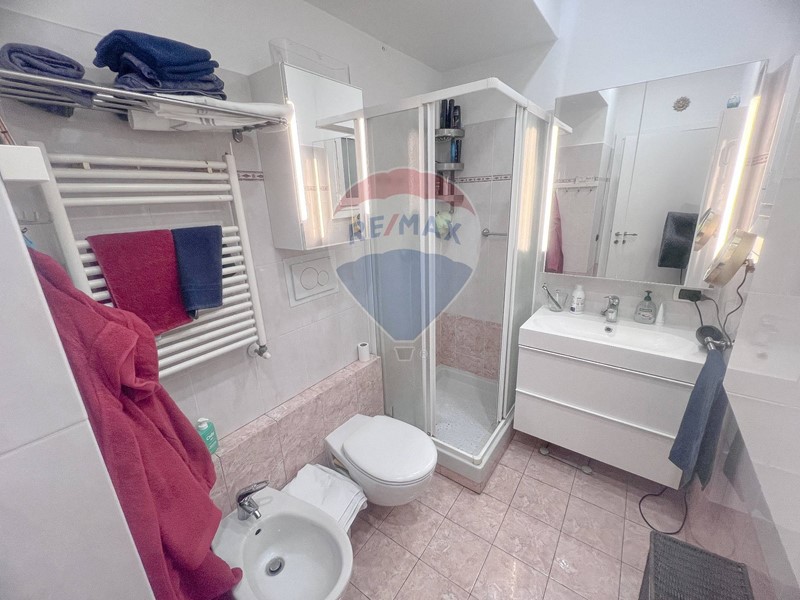 Il bagno è posizionato in una zona centrare dell'appartamento, dotato di box doccia e finestrato sul cavedio interno.
