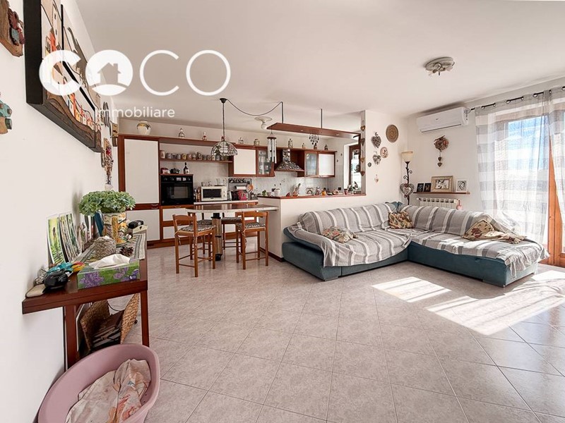Luminoso appartamento bilivello con quattro camere e due bagni in vendita a Monfalcone (al confine con Staranzano), nella tranquilla e residenziale zona di Crosera. Al primo livello si trovano un accogliente soggiorno e una spaziosa cucina, entrambi a vista e dotati di ampie finestre che regalano luminosità agli ambienti, due camere da letto e un bagno con doccia.