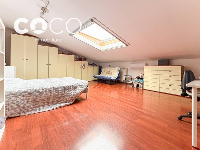 Al piano superiore ci sono altre due ampie camere da letto e un secondo bagno con vasca, che integrano l'immobile rendendolo adatto a famiglie numerose, o per creare un ambiente studio o l'area hobby. A questo livello si può accedere sia da una scala interna che direttamente dalla scala condominiale, attraverso un secondo portoncino blindato, che rende possibile la creazione di due alloggi indipendenti in quanto nella camera più grande c'è la predisposizione per installare una cucina.