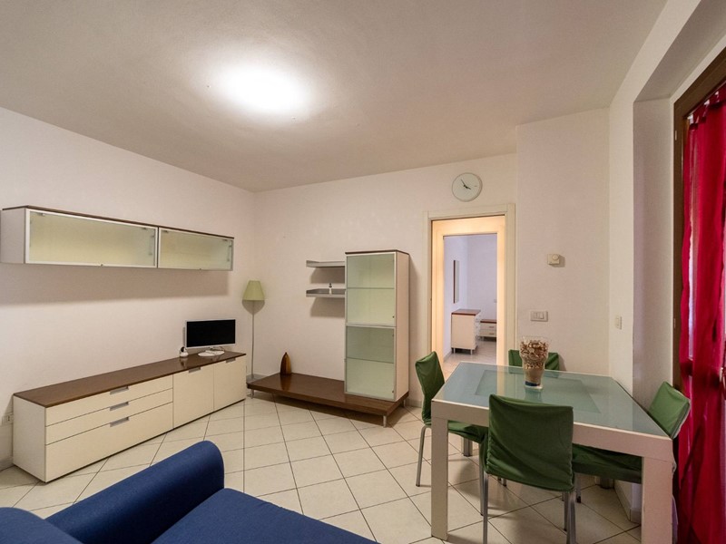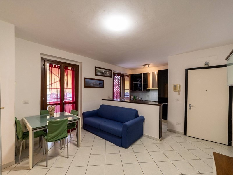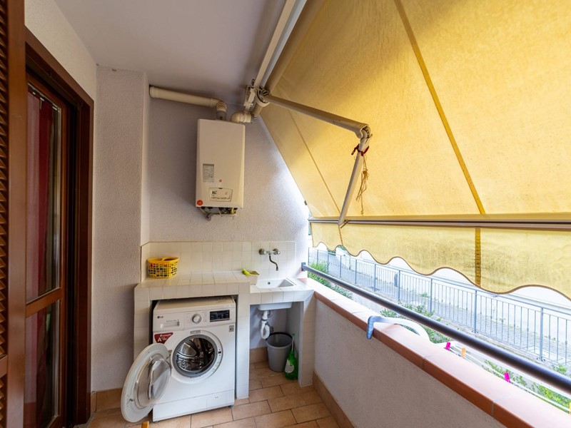 L'appartamento al primo piano con ascensore si sviluppa in una zona giorno con cucina a vista sul salotto, due camere spaziose, bagno e un ampio balcone dove c'è sia la zona lavanderia che un comodo tavolo per cenare all'aperto in maniera riservata.