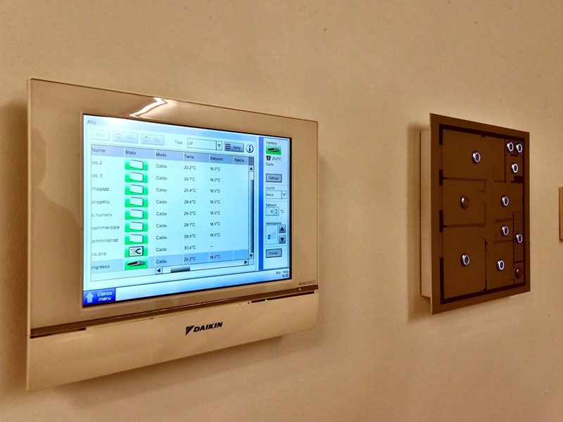 L' impiantistica interna, così come le finiture sono davvero di alto livello: impianto di climatizzazione estiva ed invernale in pompa di calore "Daikin", coibentazione perimetrale interna di tutte le pareti, impianto elettrico certificato con sistema domotico, impianto antifurto munito di videosorveglianza, impianto di ventilazione meccanica "WMC", pavimentazione in laminato, gres e pareti mobili in vetro d'arredo.