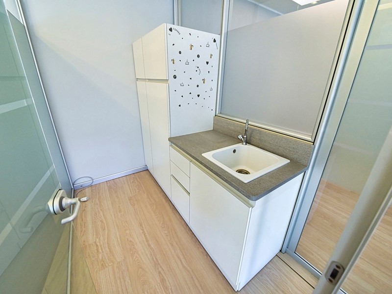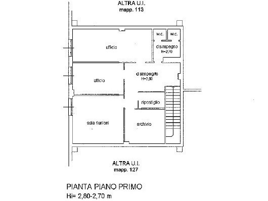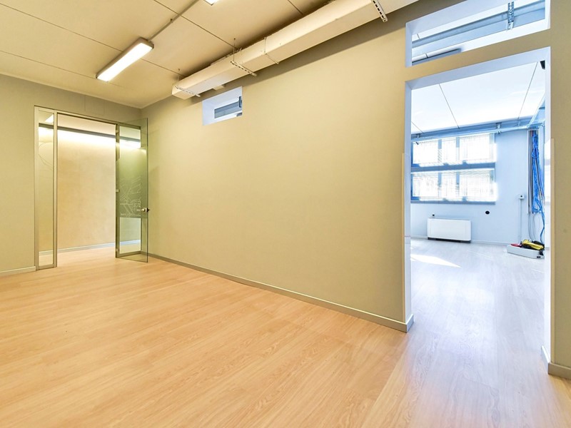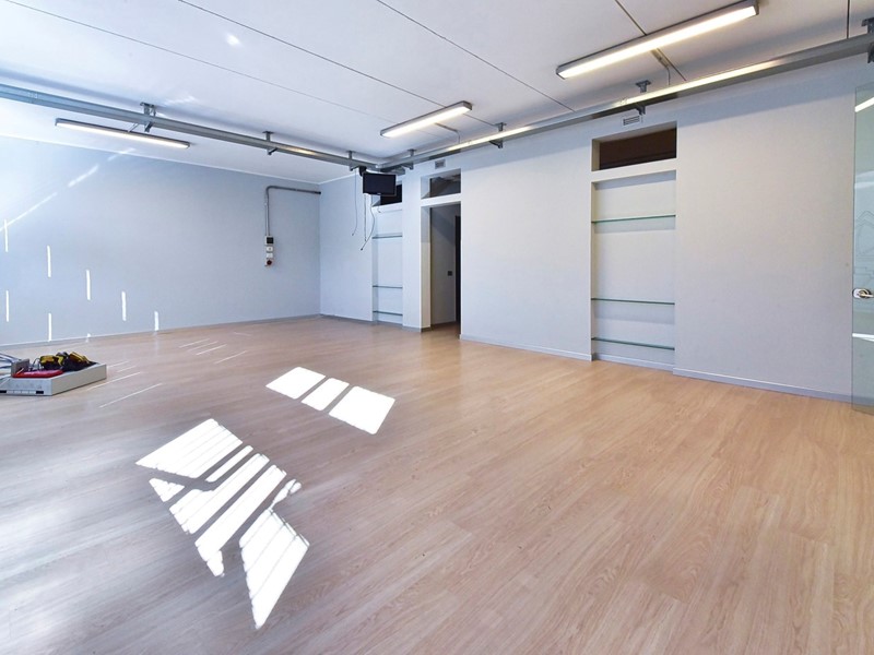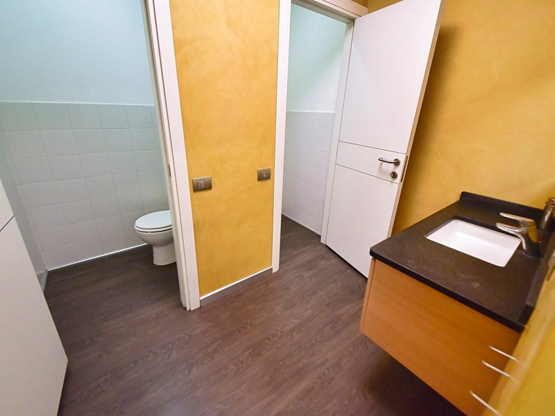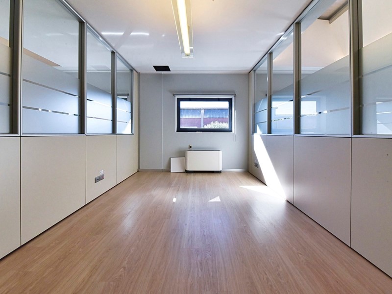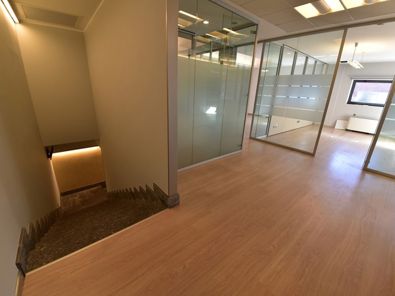 Il piano terreno, munito di servizio igienico, vanta una superficie interna di circa 115,00 mq. con destinazione d'uso laboratorio; tramite scala interna accediamo al piano primo ove insistono ulteriori 115 mq. circa a destinazione d'uso ufficio suddivisi in n. 4 ambienti con pareti mobili d'arredo oltre a ripostiglio e doppio servizio igienico.