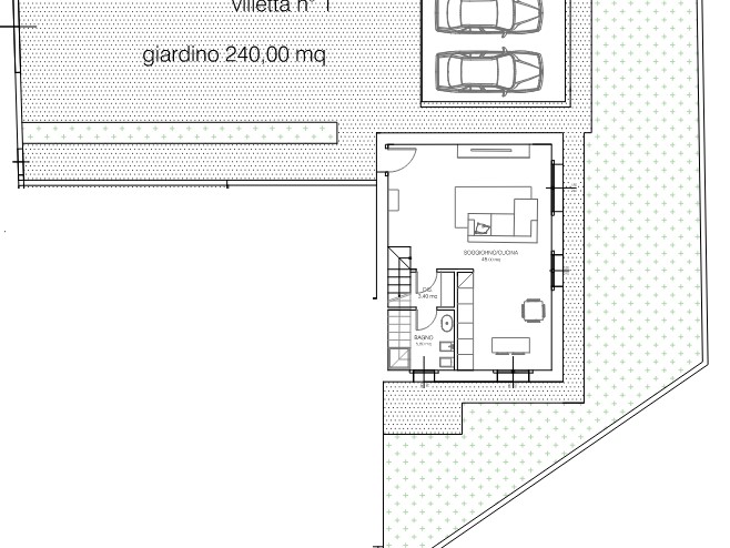 La soluzione è così composta : ingresso su ampio soggiorno con cucina a vista, molto luminoso grazie alla porta finestra che conduce al giardino, antibagno e bagno finestrato.