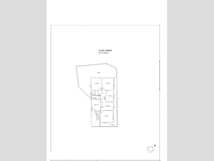 L'immobile è composto da un ampio ingresso con soggiorno e cucina abitabile, disimpegno, bagno di servizio, bagno con doccia, due camere matrimoniali e una singola.
