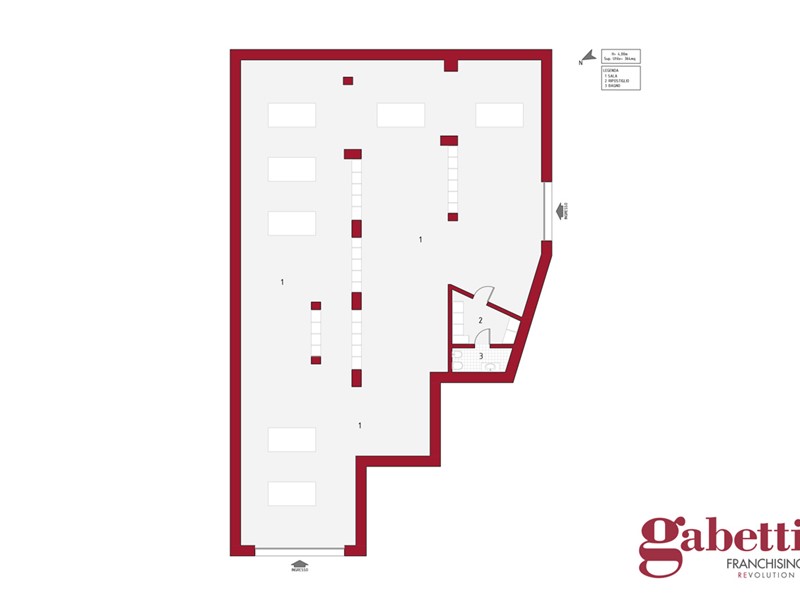 Il locale si sviluppa su una superficie di 364 mq ed è caratterizzato da una spaziosa e luminosa sala principale. La sala vanta un doppio ingresso che facilita l'afflusso di clienti e offre flessibilità nell'organizzazione dello spazio. Le due aperture consentono un'illuminazione naturale durante il giorno, creando un ambiente accogliente e invitante.