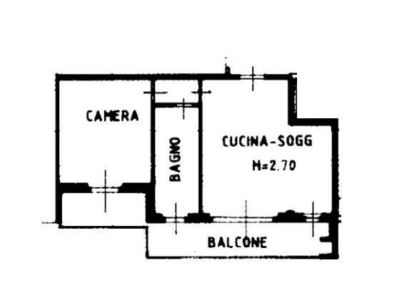 Dall'ingresso disimpegnato, arredato con armadiatura a muro, si accede all'ampio living servito da balcone e alla cucina separata ed abitabile; la zona notte è caratterizzata da due camere matrimoniali, una delle quali servita da balcone e dal bagno con doccia.
