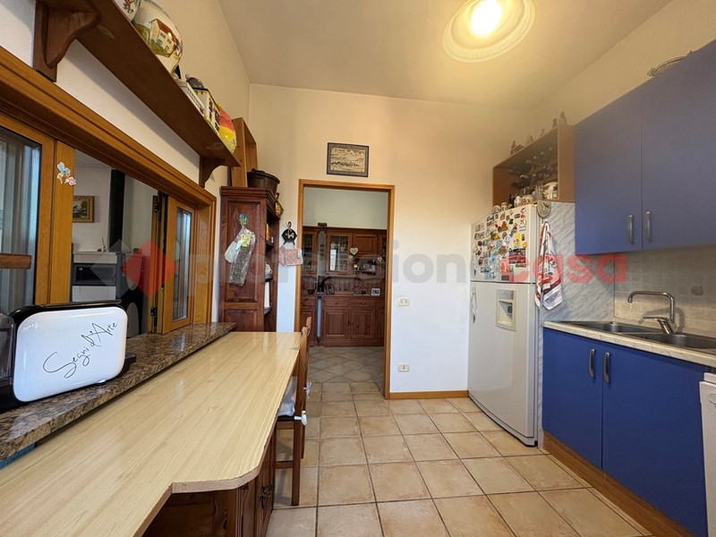una cucina abitabile comunicante da passa vivande. La zona notte, ben divisa, in fondo ha due