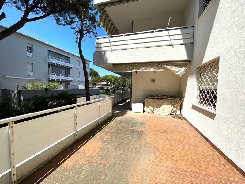A pochissimi metri dal lungomare di Lignano Riviera, in zona comoda e ben servita, proponiamo in vendita interessante appartamento con grande terrazza che si affaccia sul verde condominiale. L'immobile è composto da: Ingresso, soggiorno con cucinino semi-separato, disimpegno notte, camera da letto, bagno finestrato ed ulteriore stanza che ospita due letti singoli ed un comodo armadio; all'esterno troviamo la grande terrazza che gira sui due lati ed affaccia sul giardinetto condominiale, la stessa, molto fruibile ed accogliente, nella zona più ampia può ospitare una pratica cucina da esterno perfetta per pranzi e cene estive. Posto auto. L'immobile, ottimamente esposto, presenta finiture originali ma è abitabile fin da subito.