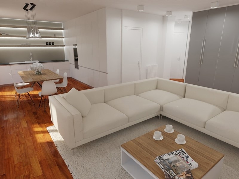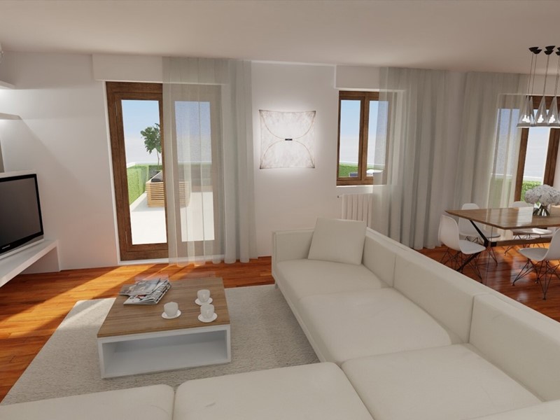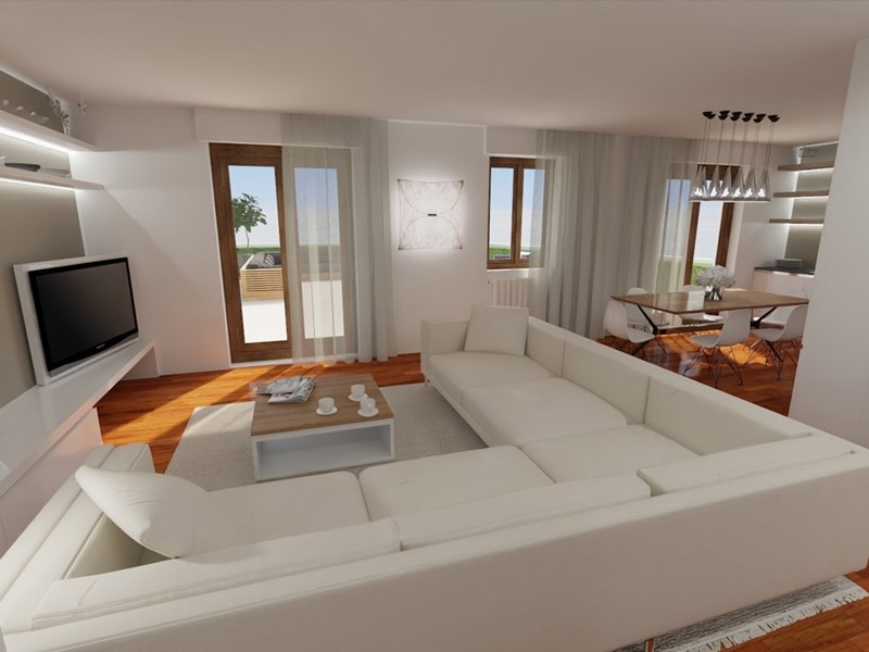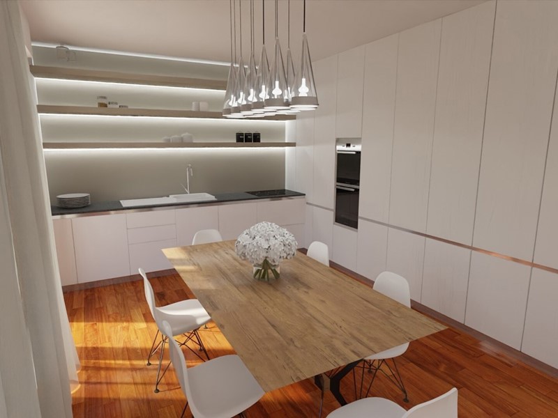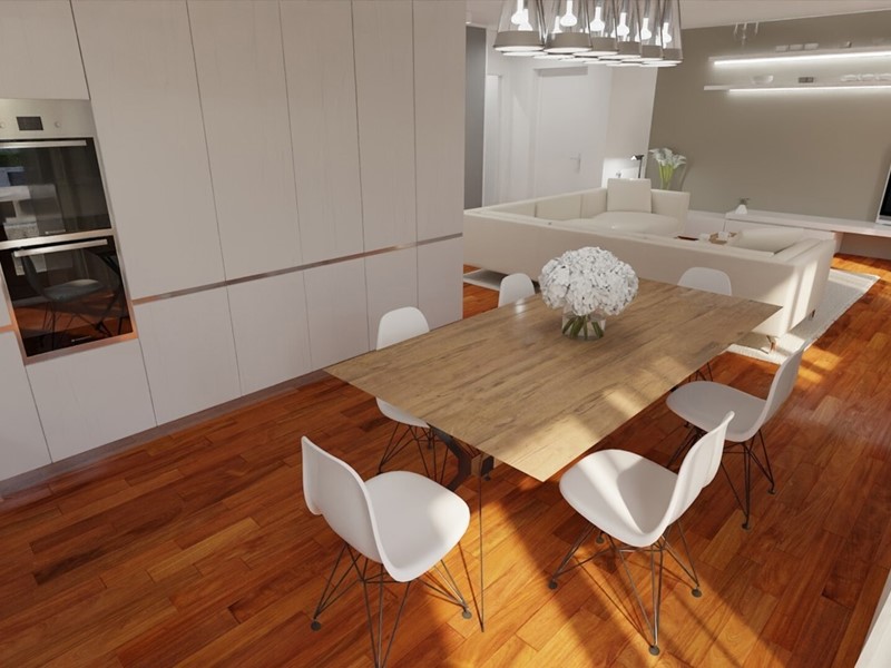 L'immobile si compone di ampio soggiorno luminoso con cucina a vista.