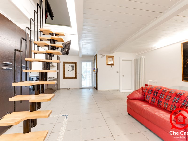 Internamente la soluzione si sviluppa su due livelli, al piano terra un unico ambiente e zona giorno con bagno, tramite una scala accediamo alla comoda mansarda al piano superiore, esternamente troviamo un ampio pergolato, corte con posti auto e giardino privato.