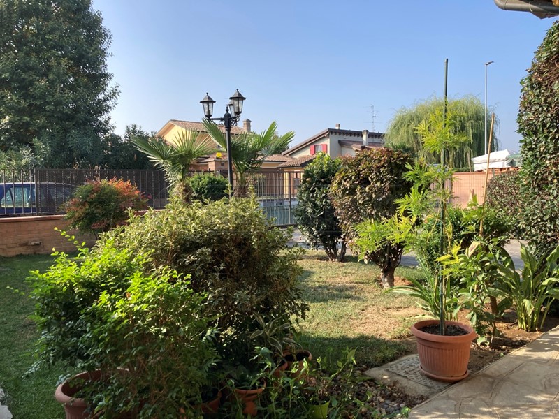 - al piano terra: soggiorno, cucina abitabile, bagno di servizio con box doccia, ripostiglio ricavato nel sottoscala, box doppio con angolo lavanderia collegato con porta interna all'abitazione e ampio giardino/cortile sui tre lati della casa;