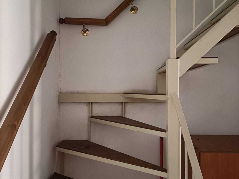 La casa si sviluppa su due livelli. Al piano terra, troverete una cucina a vista che si apre su un soggiorno, creando uno spazio conviviale e funzionale. Salendo la scala interna, si accede al primo piano dove si trova una camera da letto e un bagno.