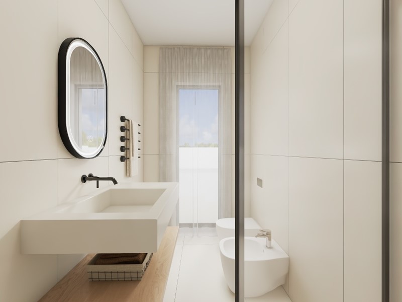 Ogni appartamento è progettato per essere efficiente e smart, le dotazioni incluse sono impianto fotovoltaico, condizionatori, scaldaacqua a pompa di calore, tapparelle motorizzate.