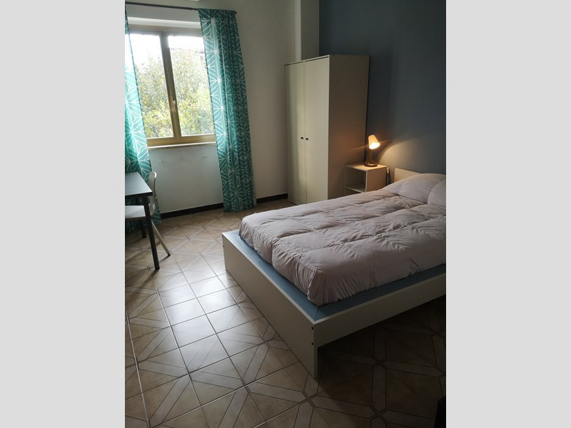 Camera singola dotata di servizi interni (wc.,lavabo,bidet)appartamento condiviso, composto da salone, cucina, tre camere, secondo bagno condiviso dotato di lavatrice. Portone blindato, posto auto,