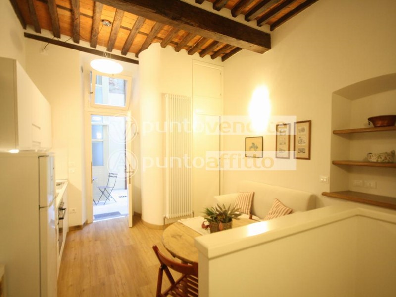 RIF. 8224 - CENTRO STORICO, CON CORTE ESTERNA PRIVATA, MOLTO CURATO - All'interno del centro storico, zona Porta Elisa/Piazza San Francesco, affittasi graziosissimo appartamento completamente ristrutturato mq 50 c.a. ammobiliato, posto al piano terra rialzato e composto da ingresso/soggiorno con divano letto ed angolo cottura con accesso a piccola corte esterna privata con angolo lavanderia, camera matrimoniale, bagno con doccia finestrato, ampio locale ripostiglio/pluriuso sottostante l'appartamento. Posto bici. Libero da Gennaio 2026 ma visionabile. SOLO REFERENZIATI.