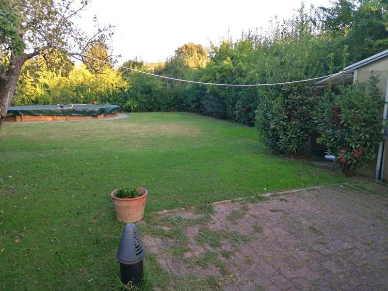 Esternamente la proprietà è circondata da un grande giardino su tre lati di circa 1.500 mq, curato e ben attrezzato: una parte pavimentata ospita un ampio parcheggio coperto per quattro auto, accessibile tramite cancello elettrico. Completano gli spazi esterni un annesso-veranda con forno a legna e tavolo conviviale, perfetto per pranzi e cene all’aperto, e una piscina smontabile seminterrata di 32 mq, ideale per rinfrescarsi durante l’estate.
