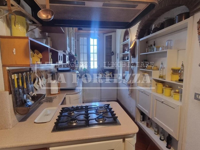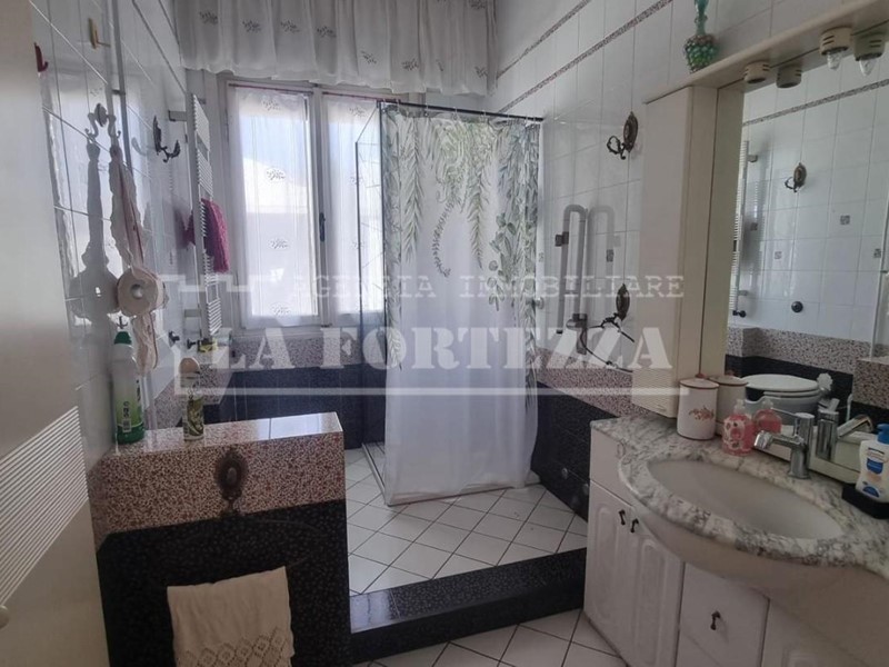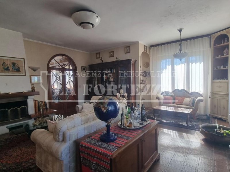 PORTA A MARE: con doppio ingresso carrabile, luminoso appartamento al primo ed ultimo piano di villa duplex con ampio giardino su tre lati e spazioso garage con terrazza a tetto, internamente composto da ingresso tradizionale, soggiorno con caminetto, cucinotto, sala da pranzo con balcone verandato, disimpegno notte, camera matrimoniale, camera media, cameretta/studio, bagno padronale e wc. Al piano terra è presente un monolocale di civile abitazione utilizzabile come ulteriore camera per ospiti, oltre ad un bagno - Necessari alcuni lavori di ammodernamento.