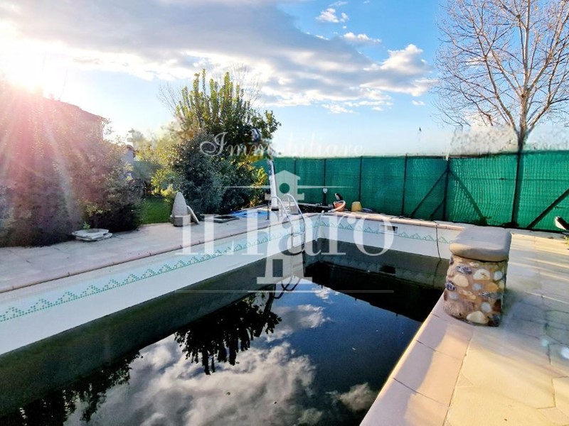 L'immobile è libero su tre lati abbracciato da giardino e resede carrabile il quale permette il parcheggio di numerose auto, sempre esternamente è presente una loggia con barbecue in muratura e splendida piscina .
