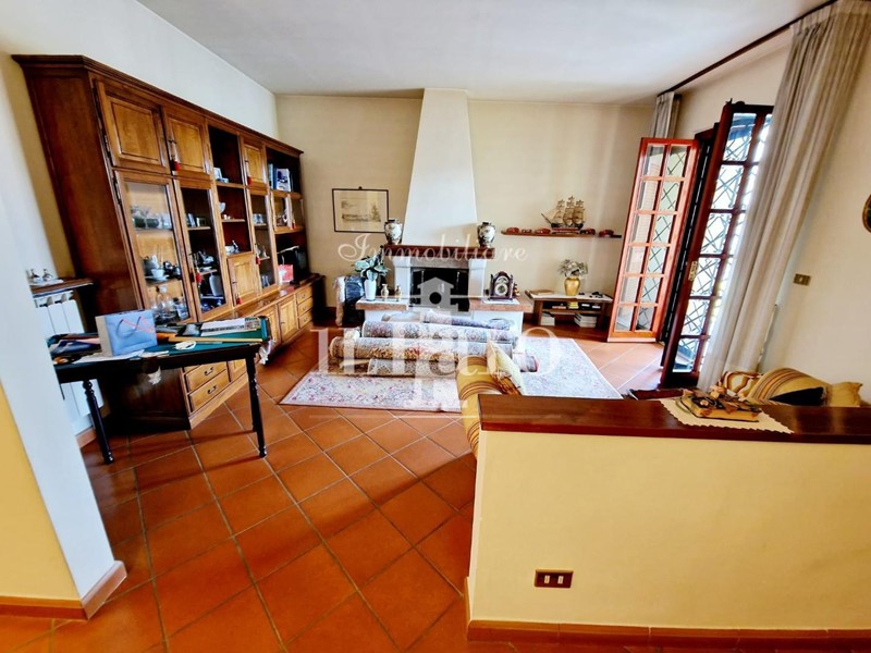 Al secondo piano un troviamo un ulteriore bellissimo soggiorno con caminetto con accesso diretto alla terrazza abitabile, due camere da letto e un altro bagno completo di vasca doccia e doppia esposizione solare.