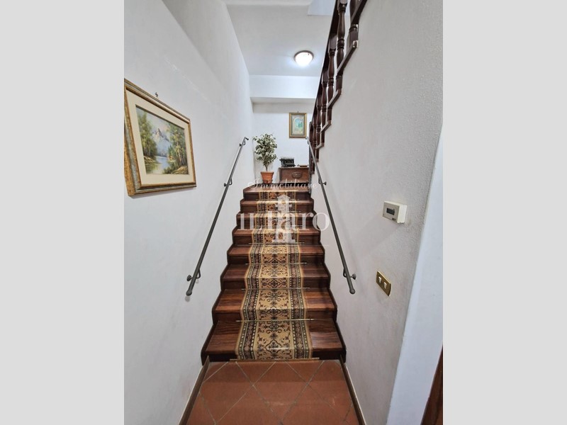Dall'ingresso, salendo comode scale raggiungiamo la zona notte composta da: disimpegno, camera matrimoniale, bagno finestrato con vasca e due camere da letto singole.