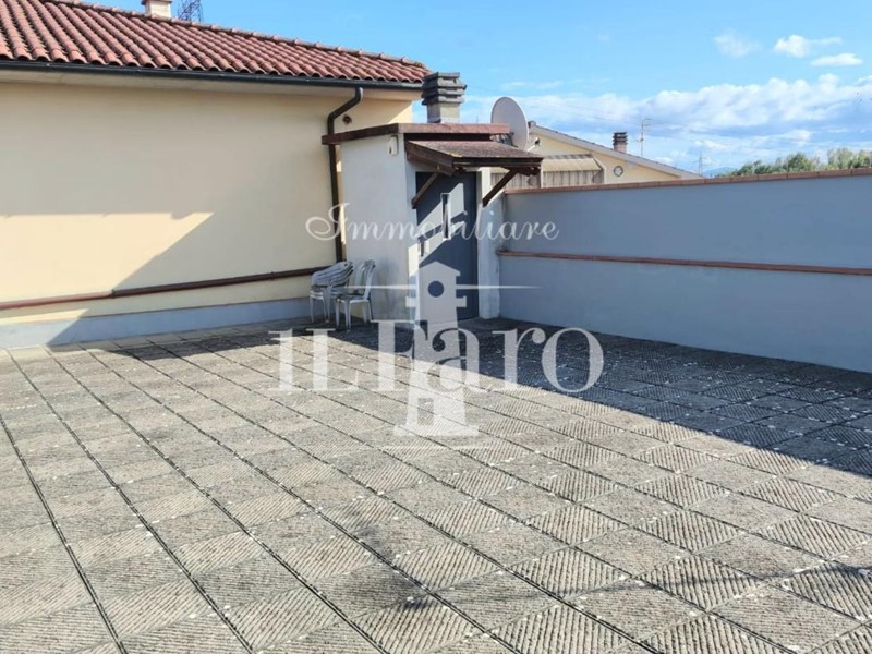 Concludono la proprietà, la grande TERRAZZA PANORAMICA di circa 90 mq. raggiungibile mediante ASCENSORE INTERNO al terratetto ( che serve tutti i piani ) e due cantine di 3 e 2 mq raggiungibili comodamente con l'auto per il carico e scarico oggetti.