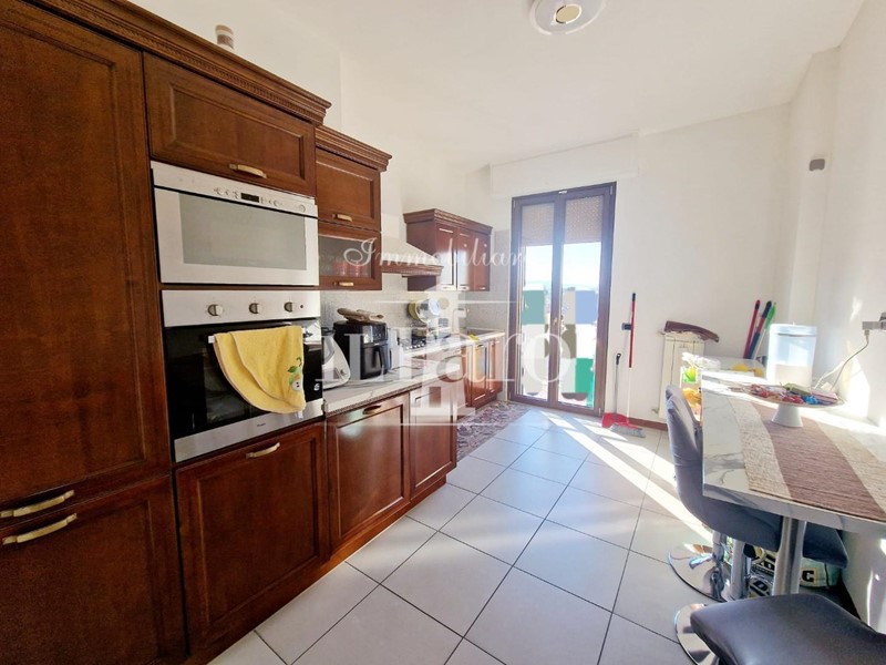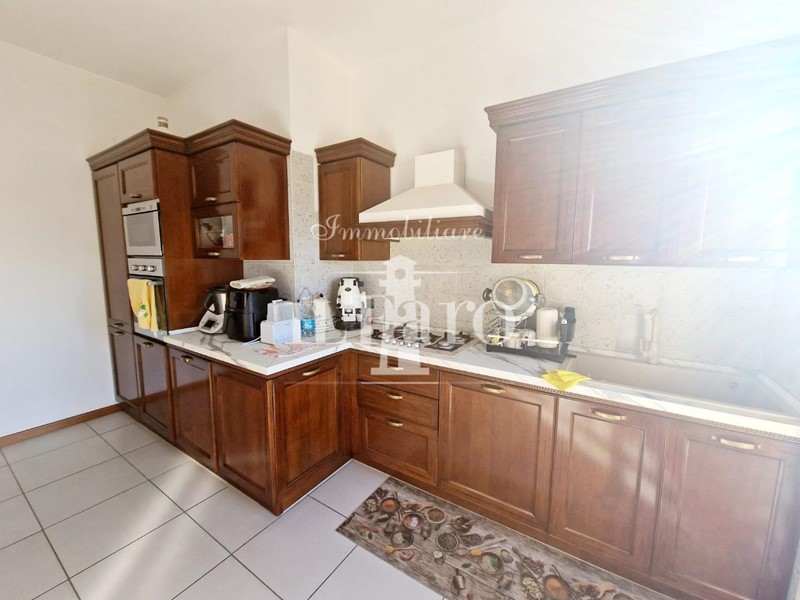 L'abitazione è così composta: Entrando ci accoglie un ampia zona giorno con caminetto moderno molto luminosa, proseguendo troviamo la cucina abitabile con il primo balcone attrezzato a lavanderia e la possibilità di poter stendere all'esterno.