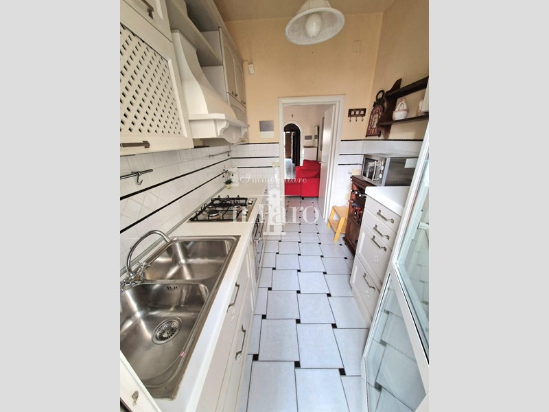 Entrando al piano terreno ci accoglie l'ingresso che conduce ai vari ambienti rispettivamente ad una ampia e luminosa sala, divisa dal tinello con cucinotto separato e con accesso diretto al GIARDINETTO TERGALE sul quale insiste un'annesso in muratura adibito a lavanderia. Sempre al piano terreno è presente un pratico ripostiglio sottoscala.