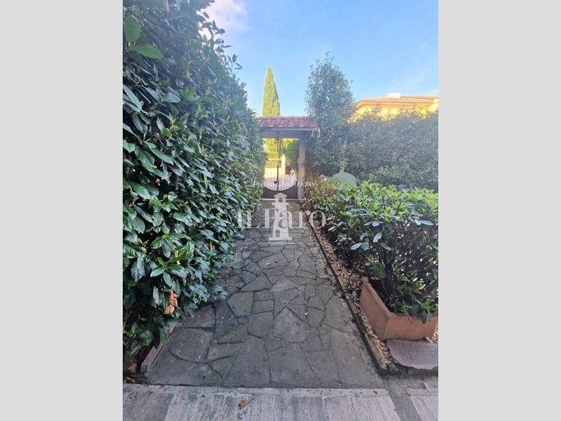 L'appartamento è situato al piano terreno di edificio BIFAMILIARE PRIVO DI SPESE CONDOMINIALI, ed è così composto: Entrando ci accoglie l'ampio ingresso che ci conduce ai vari ambienti e nell'ordine troviamo le tre camere da letto di cui due singole e una matrimoniale con bagno finestrato in camera, proseguendo troviamo il ripostiglio, un'ulteriore bagno con aspirazione forzata e per finire la splendida zona giorno-cottura OPEN-SPACE con camino. Nella parte tergale con accesso diretto dalla zona giorno troviamo una RESEDE ABITABILE pavimentata e coperta da tettoia sulla quale insistono due annessi in muratura attualmente utilizzati come ripostiglio/lavanderia. Sempre nella parte tergale attiguo alla resede pavimentata troviamo uno splendido GIARDINO di 60 mq. attrezzato con barbecue in muratura e casetta in legno utilizzata come rimessaggio attrezzi. Nella parte frontale recintata è presente una resede asfaltata dove poter parcheggiare due auto. L'appartamento si presenta in buone condizioni generali con aria condizionata in tutte le stanze e stufa a pellet nella zona giorno.
