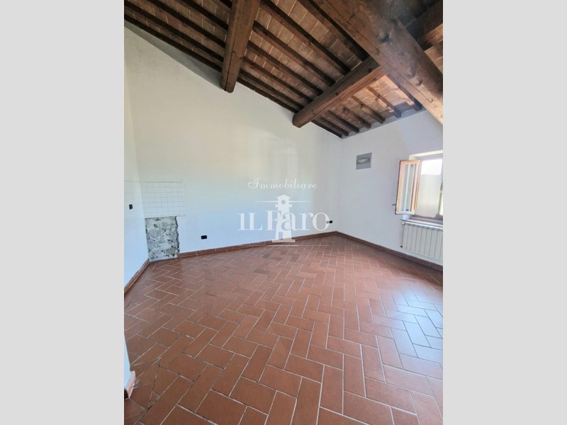 L'immobile è in stile tipico toscano con travi a vista e cotto.