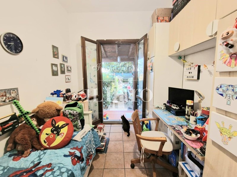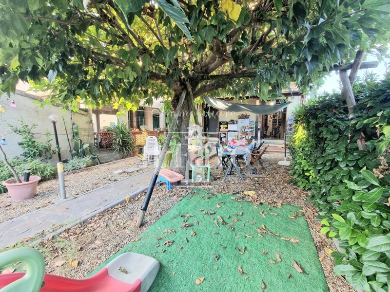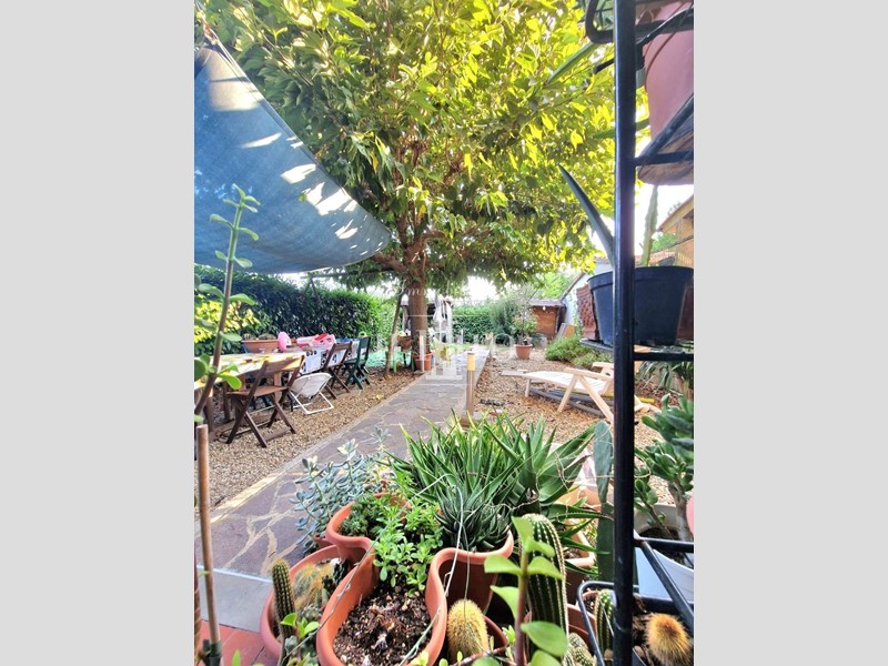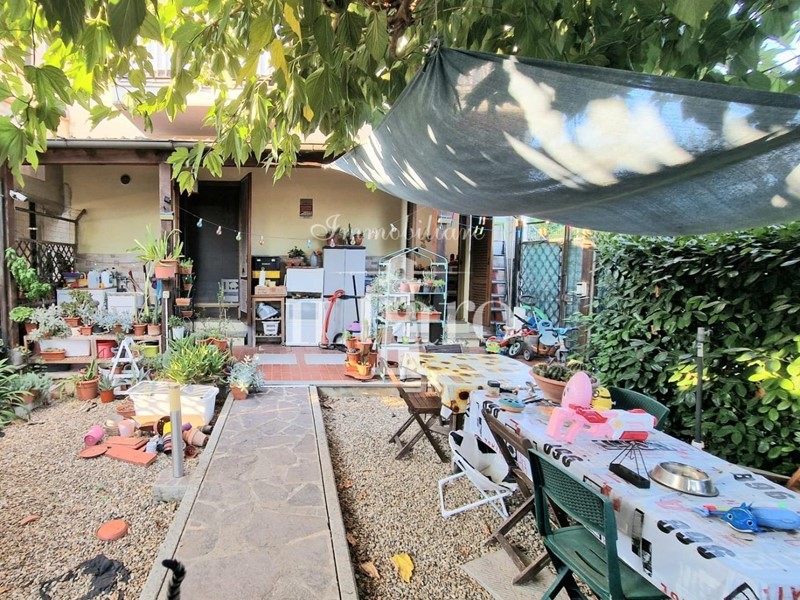 Sulla parte tergale è presente un giardino di circa 60 mq accessibile da entrambe le camere. Nella parte frontale invece è presente una resede di circa 15 mq dove poter parcheggiare l'auto.