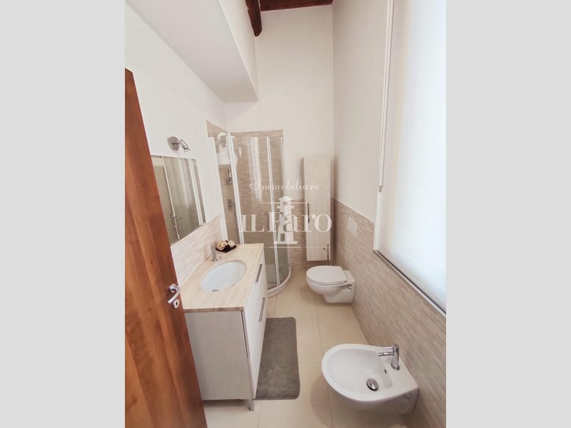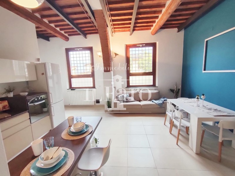 L'abitazione è così composta: Entrando ci accoglie una bella zona giorno molto luminosa aperta sulla cucina abitabile, tramite un disimpegno raggiungiamo la zona notte composta da una camera da letto matrimoniale con soppalco, una cameretta e un bel bagno finestrato con doccia.
