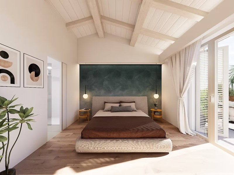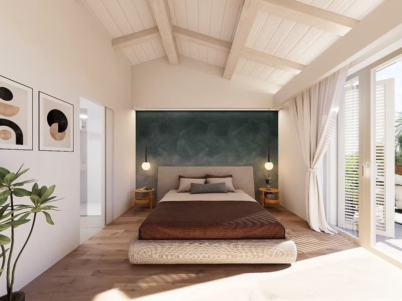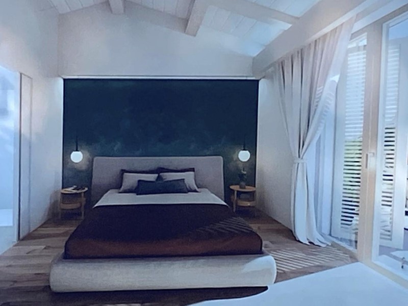 La zona giorno è composta da un luminoso soggiorno con cucina a vista, creando un ambiente accogliente e funzionale. Il disimpegno notte conduce a due camere al piano terra (una doppia e una matrimoniale) e a una terza camera matrimoniale con bagno privato al piano primo. Ogni dettaglio è curato con materiali di alta qualità, personalizzabili secondo le proprie esigenze.