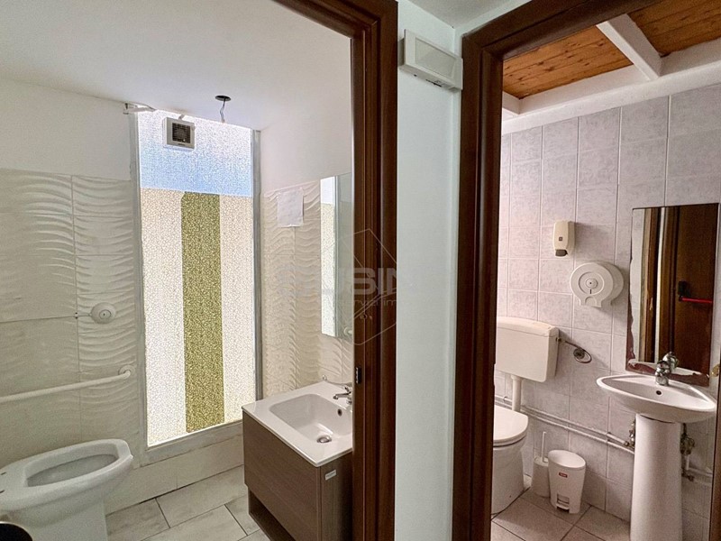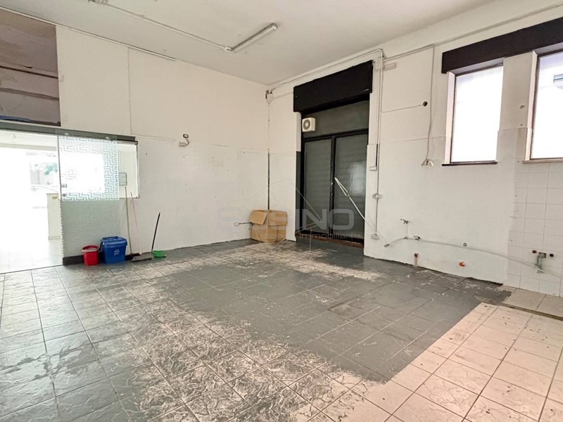Internamente l'immobile si presenta con un ampio e luminoso vano commerciale con due vetrine sul prospetto principale, a seguire un disimpegno ospita la zona bagni a norma e funge da filtro alla zona laboratorio-cucina/deposito dotata di vetrina sul cortile interno utile per carico e scarico merci.
