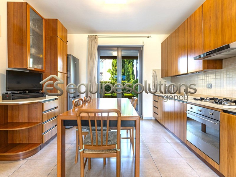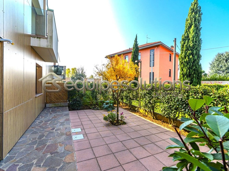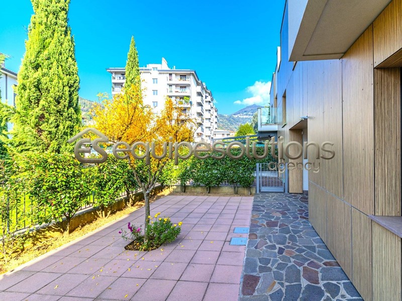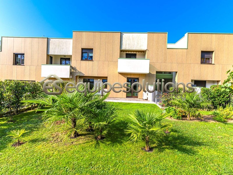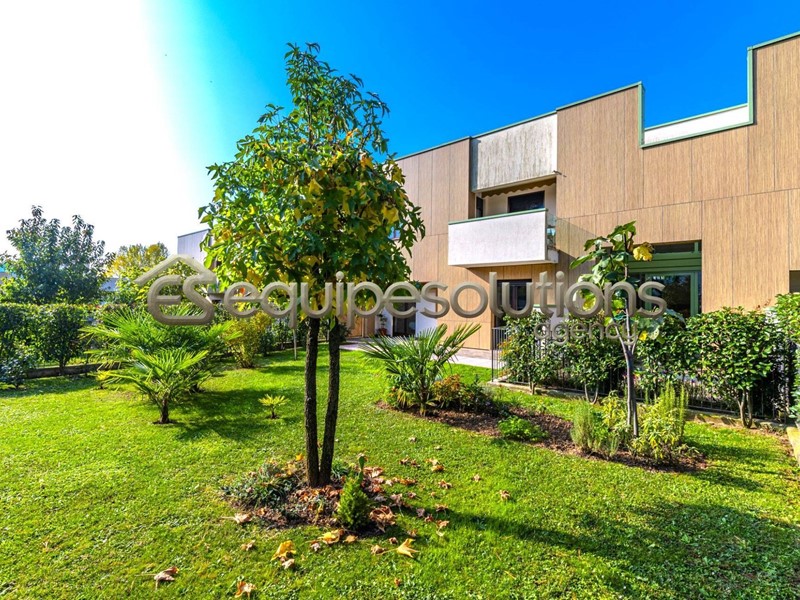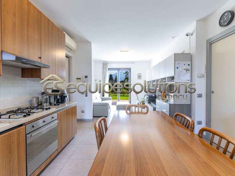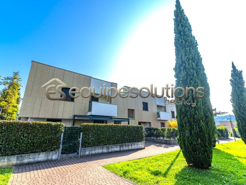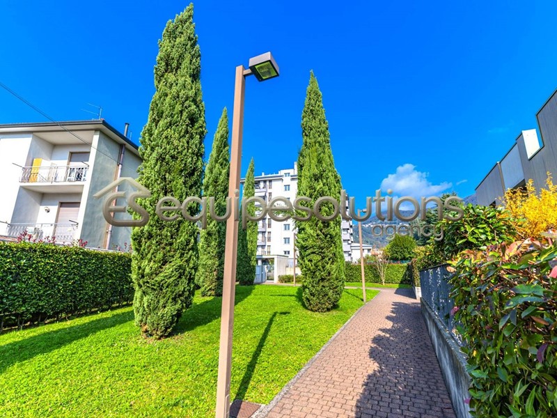 ALZANO LOMBARDO: appartamento di recente costruzione, posto al piano terra di una mini palazzina, composto da ingresso con soggiorno, che affaccia su uno splendido giardino di un ampia metratura, cucina a vista, dalla quale si può accedere ad un secondo spazio esterno piastrellato, dove poter posare un bel gazebo per godersi pranzi e cene in compagnia di amici. Nella zona notte troviamo due camere da letto e un bagno finestrato con doccia. Completa la proprietà un ampio box singolo. L'appartamento è in classe "B" ed è dotato di tutte le nuove tecnologie del momento, dal riscaldamento a pavimento, all'aria condizionata in tutti gli ambienti, alle tapparelle elettriche, alla caldaia con pannello solare termico, alla basculante elettrica, al cappotto esterno per isolamento termico e per finire all'antifurto sia perimetrale che sugli infissi.