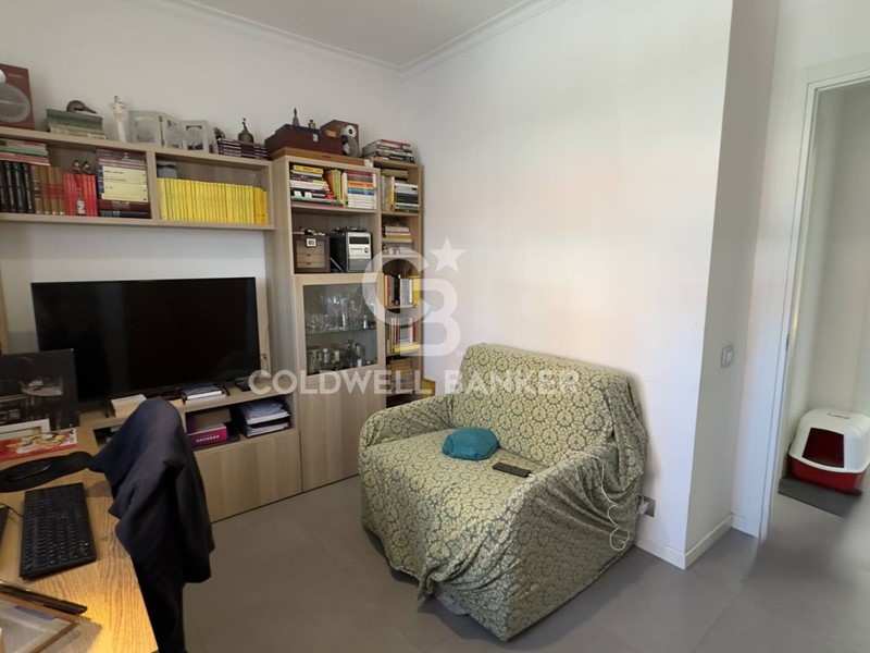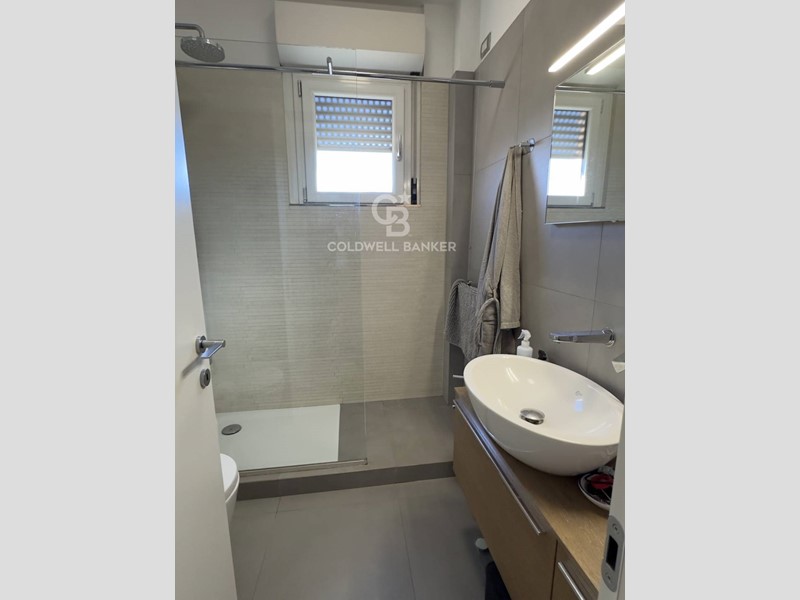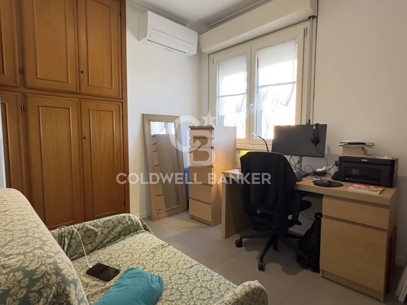 Il disimpegno conduce alla camera matrimoniale, alla cameretta attualmente utilizzata come studio e al bagno, moderno e rifinito, dotato di doccia. Gli ambienti sono climatizzati, gli infissi in PVC nella parte interna e in legno in quella esterna con doppio vetro garantiscono isolamento termico e acustico, e il riscaldamento centralizzato è incluso nelle spese condominiali, così come il consumo dellacqua.