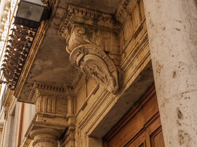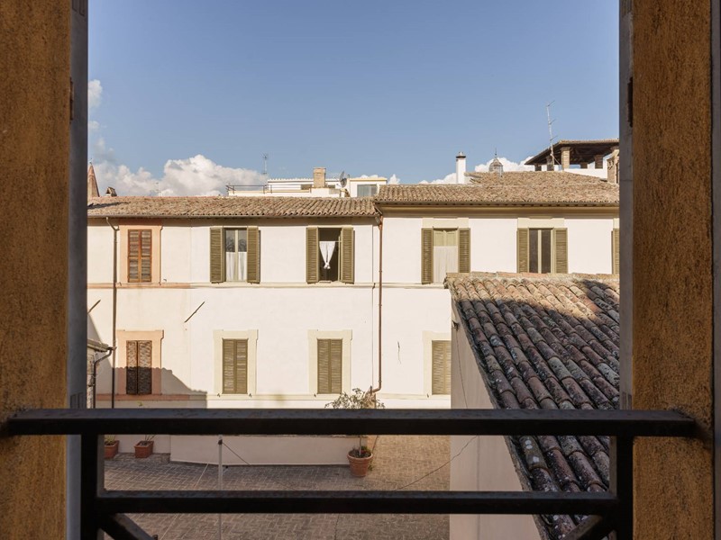 Le ampie finestre si affacciano sul caratteristico cortile interno, offrendo tranquillità e una piacevole vista sui dettagli architettonici del palazzo.