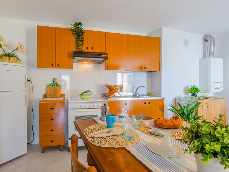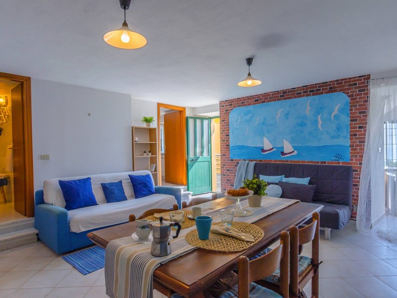 L'immobile, dagli spazi accoglienti e generosi, è composto da soggiorno con angolo cottura, camera, bagno, sottoscala utilizzabile come stenditoio, ampia corte esterna vista mare e posto auto.