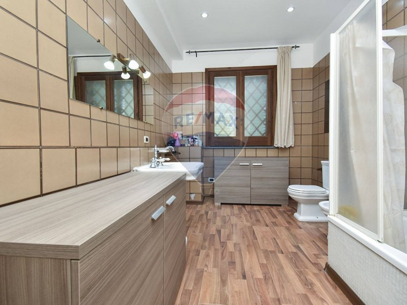 Di fronte all'ingresso troviamo un ampio disimpegno con la scala che conduce al primo piano con a fianco un grande bagno con doppia finestra ed ampio box doccia.
