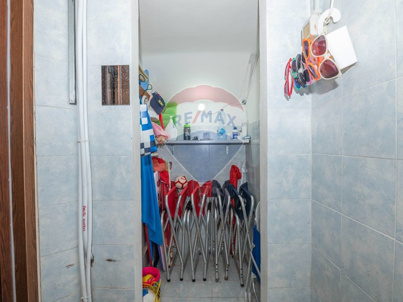 Al piano terra abbiamo: una doccia, un piccolo ripostiglio e inoltre un garage in condivisione con altri 3 condomini [posto macchina] non assegnato.