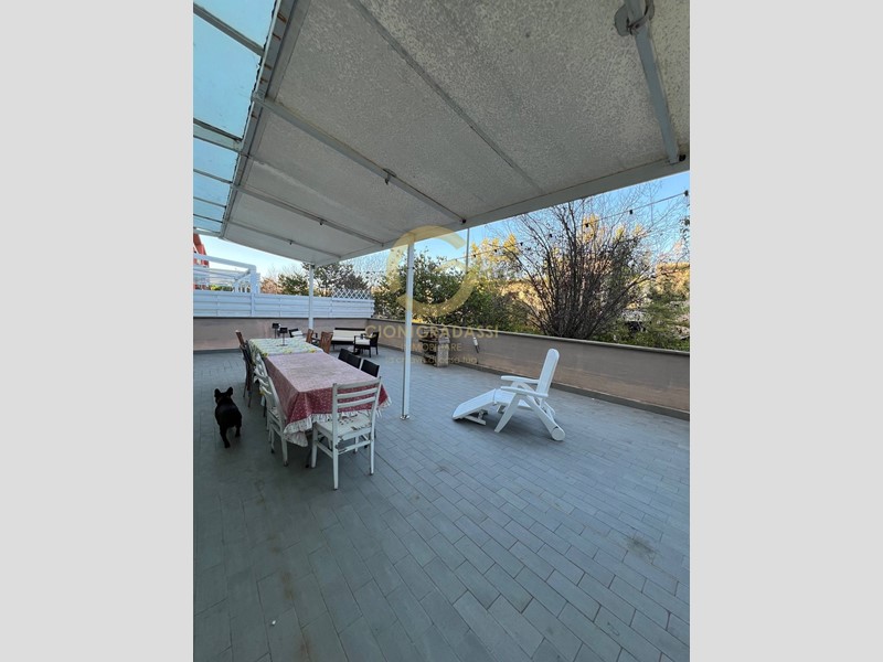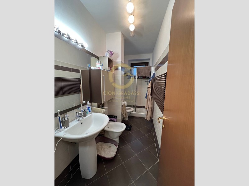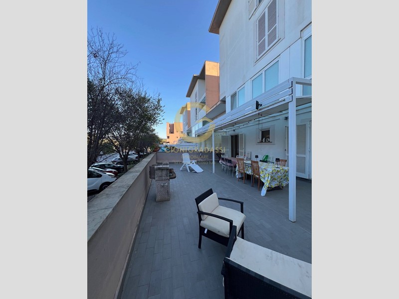 BORGO DI MAGRIGNANO Zona residenziale tranquilla, in condominio di recente costruzione appartamento posto al piano rialzato con ascensore composto da ingresso in zona giorno con balcone di accesso a giardino di circa 40 mq., cucina abitabile con accesso allo stesso balcone e ripostiglio, disimpegno notte, una camera matrimoniale due camere singole, tutte le camere hanno accesso alla terrazza di circa mq. 70, un bagno con doccia e finestra e un bagno con vasca senza finestra. Al piano seminterrato (al quale si può accedere anche con ascensore)