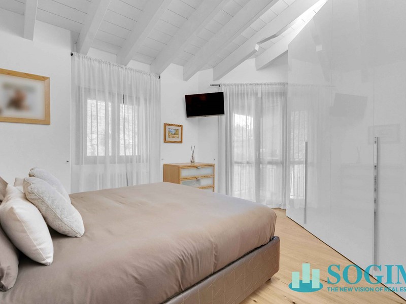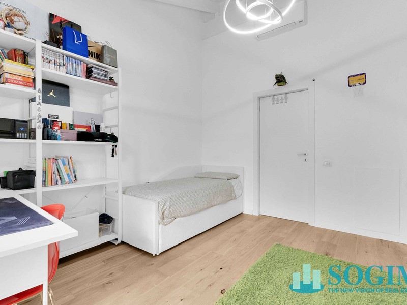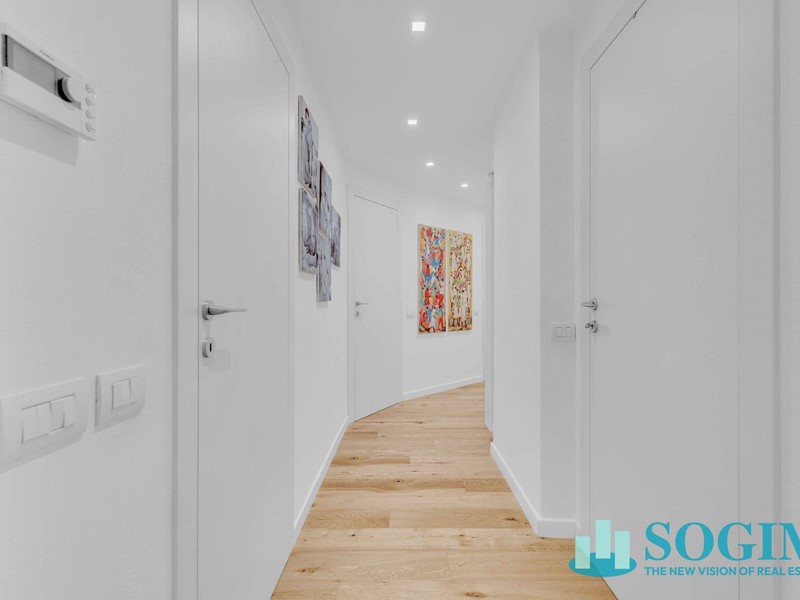 Un disimpegno conduce nella zona notte, composta dalla suite matrimoniale, dotata di balcone privato e le due camere singole. Completano la soluzione i due bagni elegantemente rifiniti e un ampio ripostiglio/lavanderia.