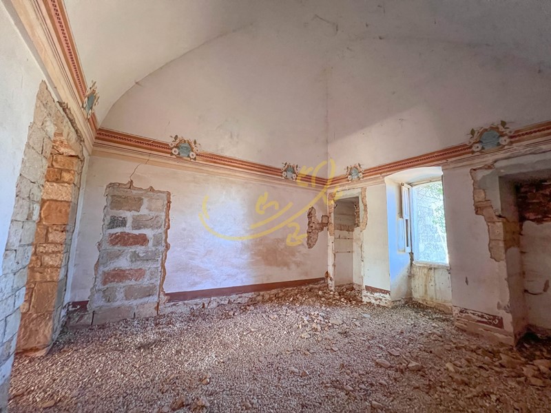 L'abitazione è composta da 9 ambienti: il piano terra ha una superficie di circa 280 mq, presenta volte alte, ampie stanze e camino in pietra, mentre il piano primo, collegato tramite una scala interna, ha una superficie di circa 26 mq e dà accesso al terrazzino con vista panoramica sulla campagna.