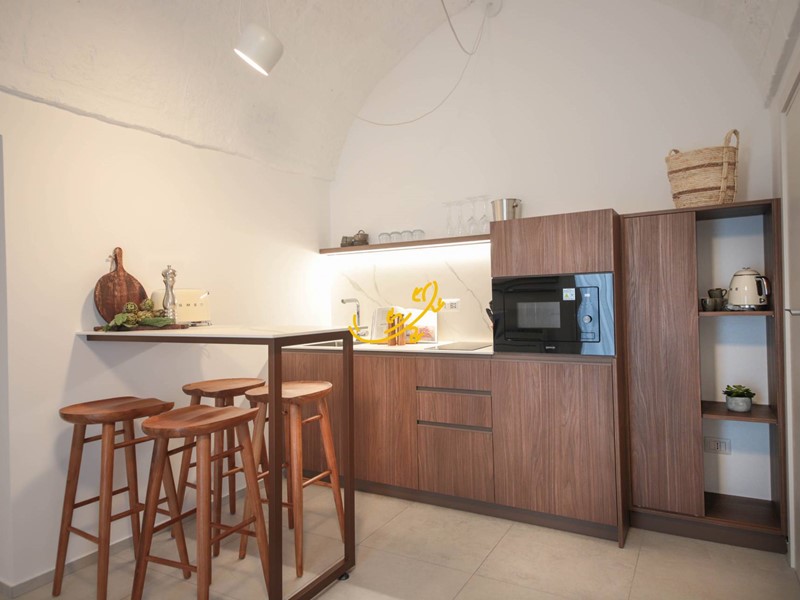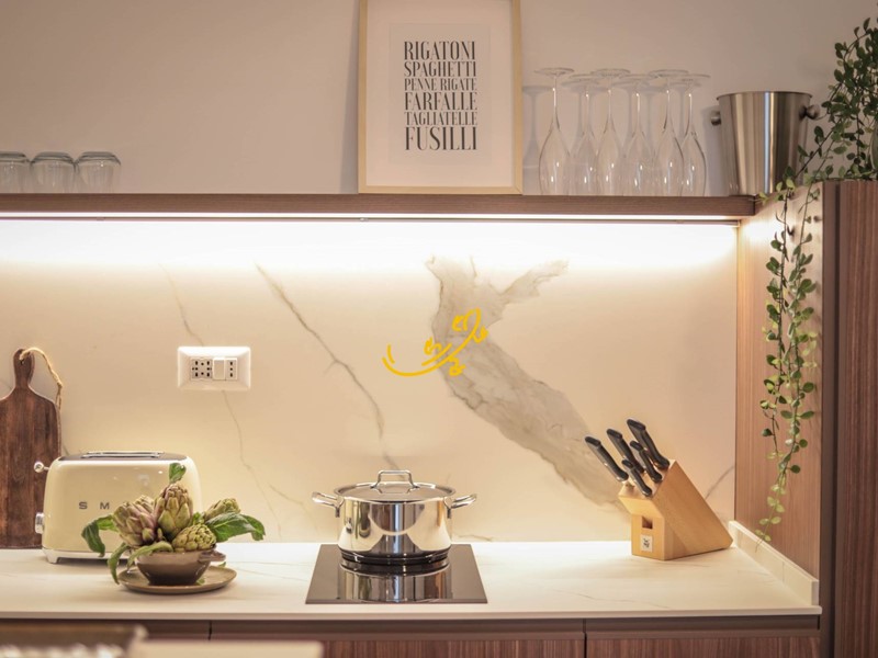 Al primo piano, LA LAMPARA si compone di ingresso in zona living con un comodo divano-letto, balcone con affaccio sul vicolo; bagno con doccia. Comoda cucina con piano cottura a induzione, lavastoviglie, frigorifero e fornetto; camera matrimoniale con balcone, ampio bagno con doccia.