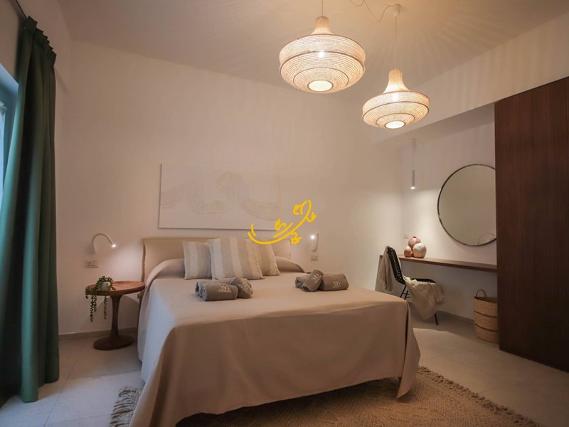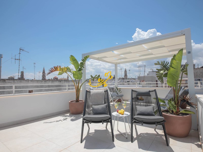 Al terzo e ultimo piano, terzo alloggio IL FARO, composto da due stanze di cui cucina attrezzata, bagno con doccia; camera matrimoniale con accesso esclusivo ad un terrazzino al piano con vasca idromassaggio, con pergolato e piante di arredo.