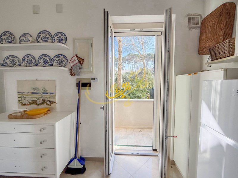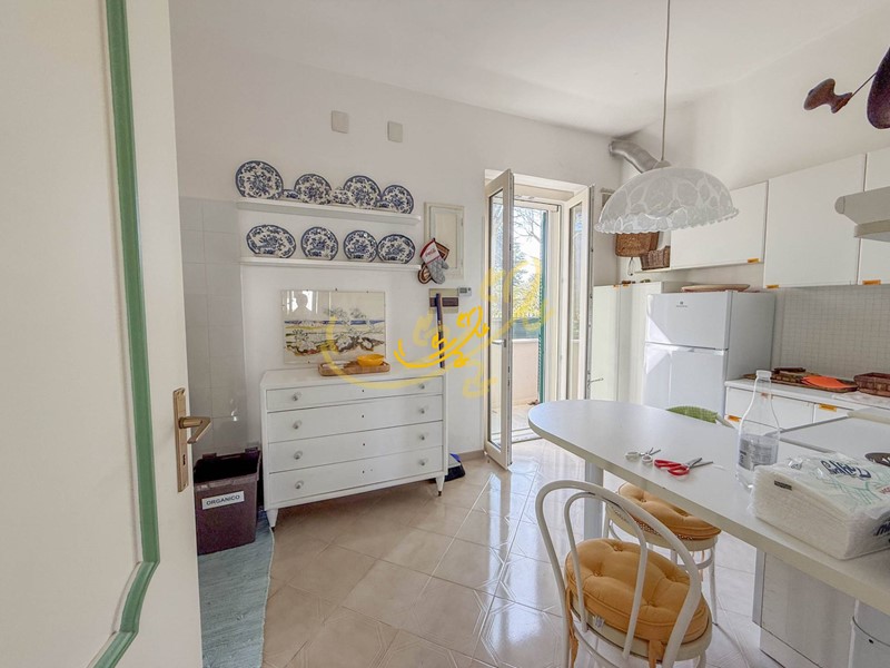 L'ingresso si apre sulla zona living a piano terra, arredata con divani e tavolo da pranzo, illuminata da una finestra che affaccia sul piazzale. Da qui si accede alla cucina abitabile, luminosa grazie alla porta finestra con uscita su un piccolo cortile privato posto sul retro della casa. Completa il piano un bagno di servizio con doccia.