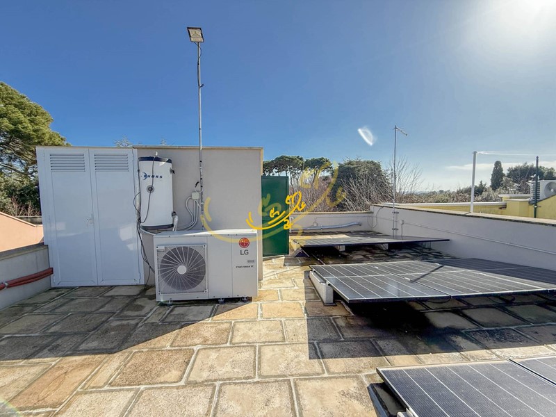 Dal soggiorno, una seconda scala conduce al piano primo, dove si sviluppa la zona notte composta da tre camere da letto e un bagno con vasca. Una delle tre camere dispone di un balconcino privato coperto. Infine, una scala conduce al terrazzo, attrezzato con pannelli solari, da cui è possibile godere di una piacevole vista sulla zona circostante.