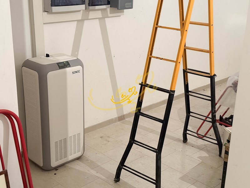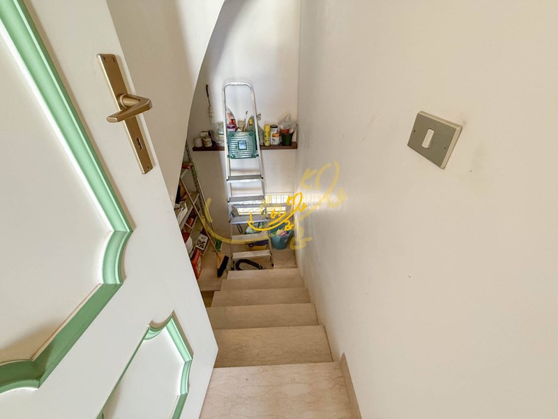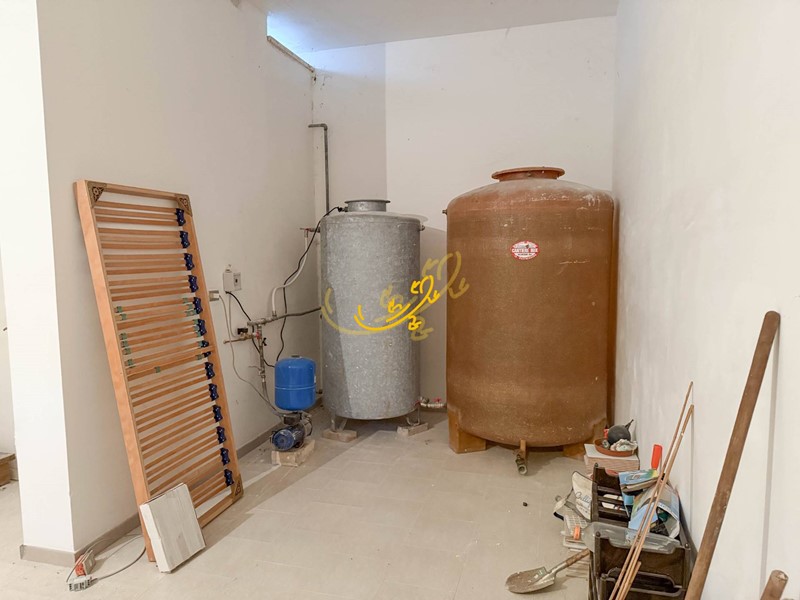 Una scala interna conduce alla cantina semi interrata ,dotata di riserva idrica e batteria di accumulo per i pannelli solari.