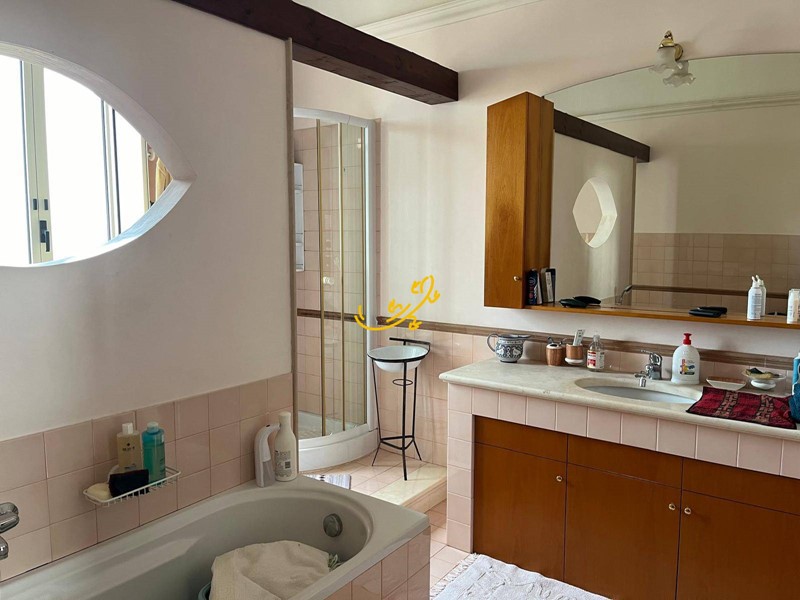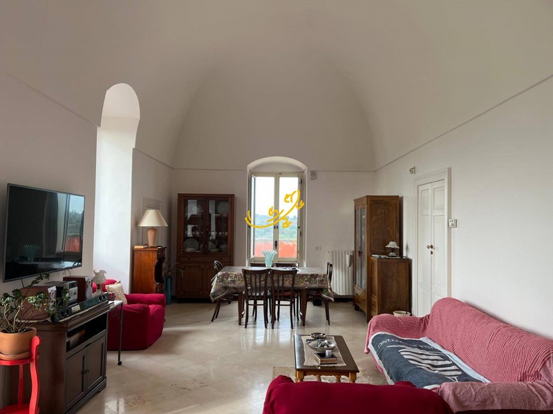 il Piano terra mq 200 circa: è caratterizzato da pavimenti in pietra locale e soffitti con suggestive volte a vela e a botte, è suddiviso in ingresso, zona pranzo con cucina, soggiorno e 5 camere da letto.