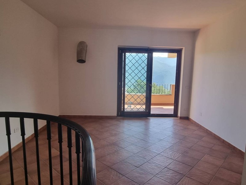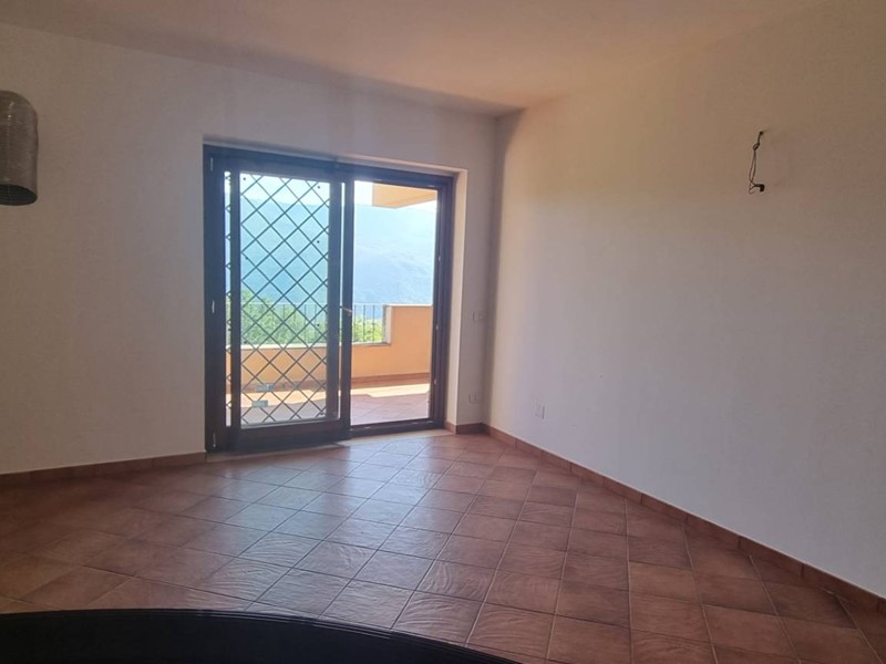 L'appartamento è diviso su due livelli , tramite l' ingresso principale si arriva a un ampio e luminoso soggiorno, dotato di doppie finestre in PVC a doppio vetro che danno l'accesso a uno strepitoso terrazzo con vista mozzafiato sulla vallata , una camera da letto , cucina abitabile e servizio; tramite una comoda scala si scende al piano inferiore che è sbancato e troviamo un'ulteriore soggiorno con terrazzo con la medesima vista ed esposizione del primo ,un secondo bagno e due camere da letto, completa la proprietà un comodo giardino a livello.