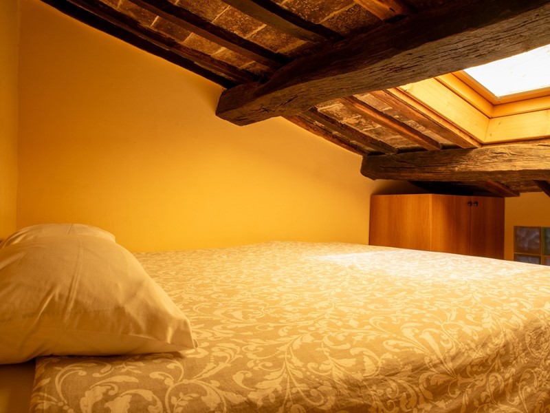 Limmobile si sviluppa su due livelli, collegati da una scala interna ben rifinita. Al primo piano troviamo un accogliente soggiorno con cucina a vista in stile americano, luminoso e ben organizzato, che si apre su un balcone con una vista panoramica sulla piazza. Salendo al secondo piano si accede a una comoda cameretta da letto e a un bagno con finestra, ristrutturato con gusto e funzionalità. Lultimo livello ospita una mansarda dal fascino intimo e riservato, attualmente adibita a camera da letto matrimoniale, arricchita da un lucernario che regala luce naturale e una suggestiva vista sulla valle sottostante.